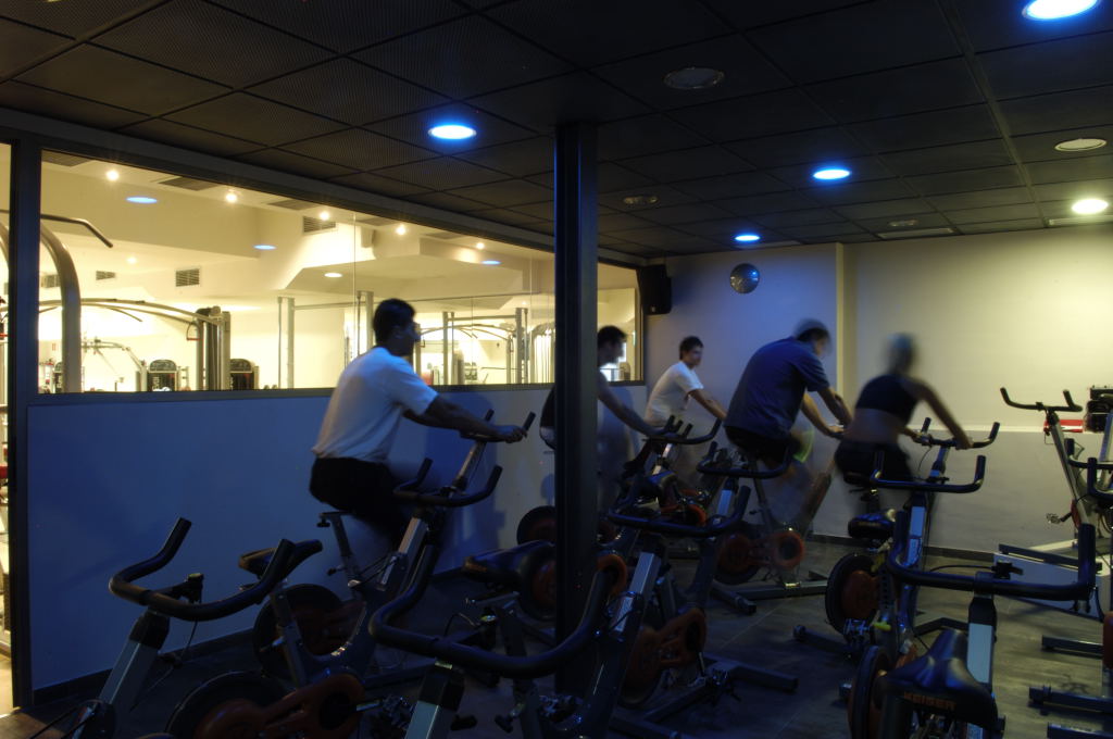 Dividit en quatre plantes, es va fer una zonificació molt clara: sala de maquines i sala d’spinning al semisoterrani; recepció, zona pels socis, despatxos i sala polivalent en altell; vestidors, zona d’aigua i cabines d’atenció personalitzada en planta 1ª; i sala de fitness en planta 2ª.