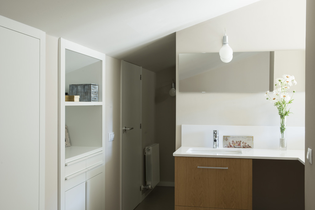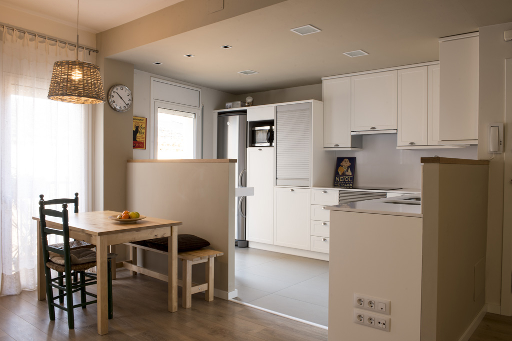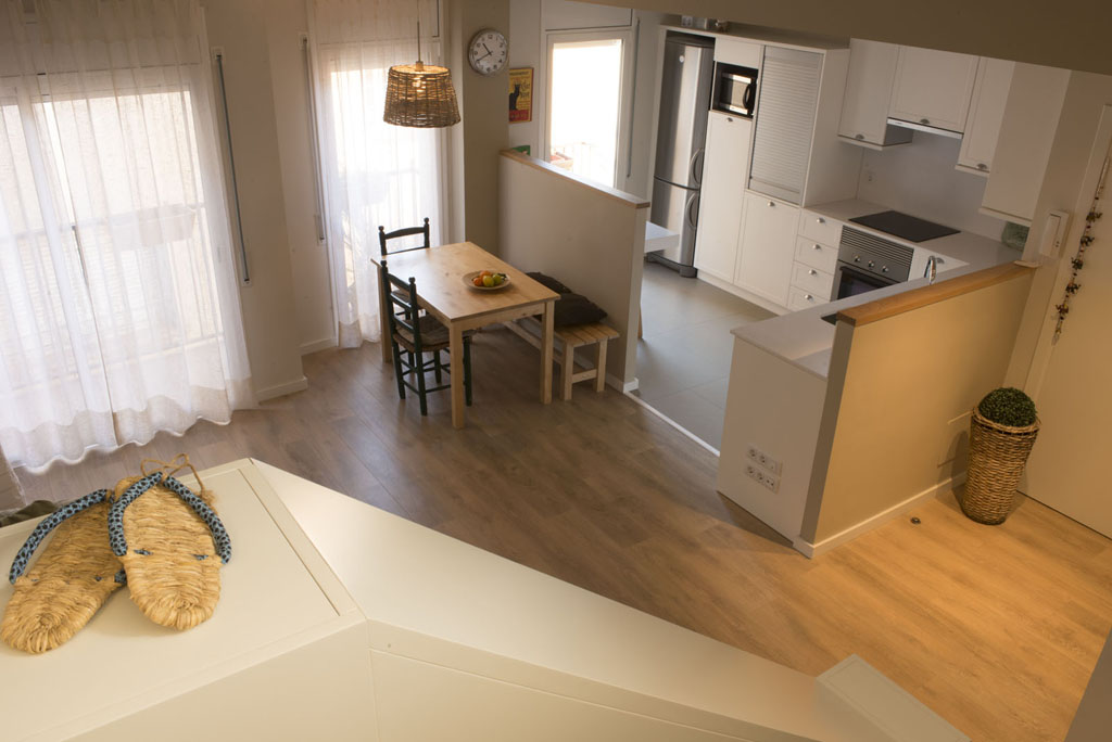 La reforma d’aquest dúplex es va fonamentar en unificar visualment l’espai de cuina amb el d’estar-menjador en el nivell inferior i en l’adequació de la zona sotacoberta del nivell superior, dotant-la d’una millor organització i aprofitament dels espais.