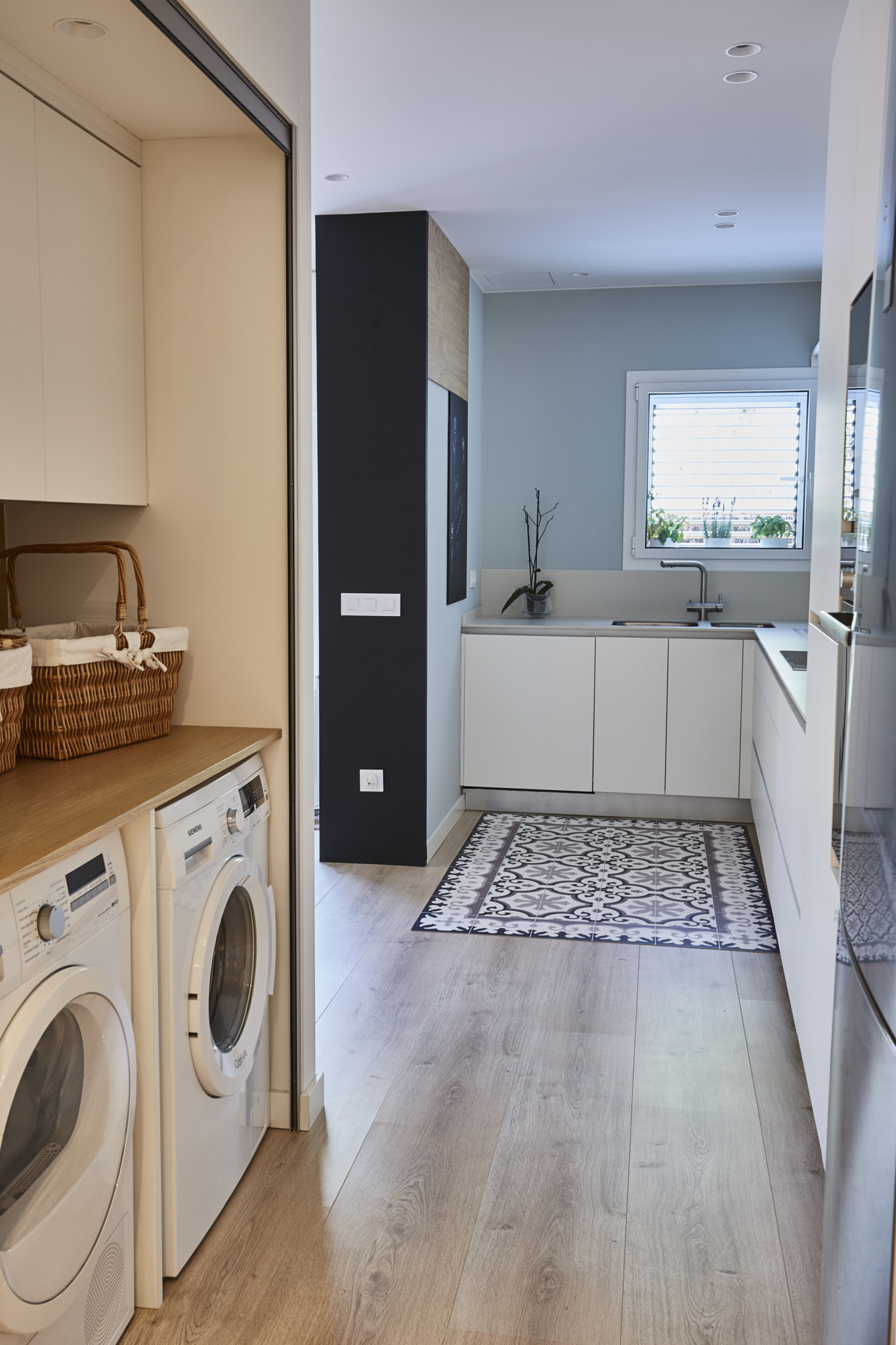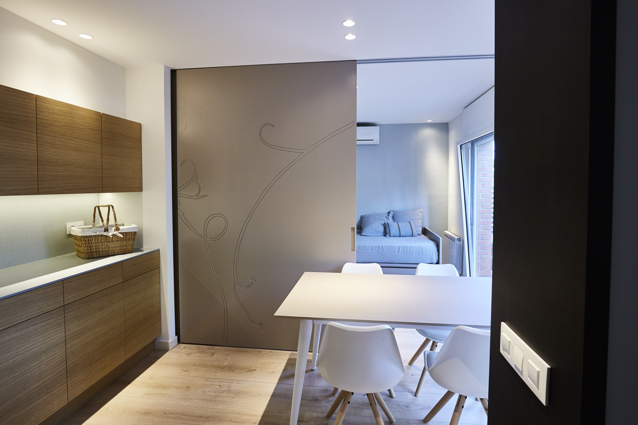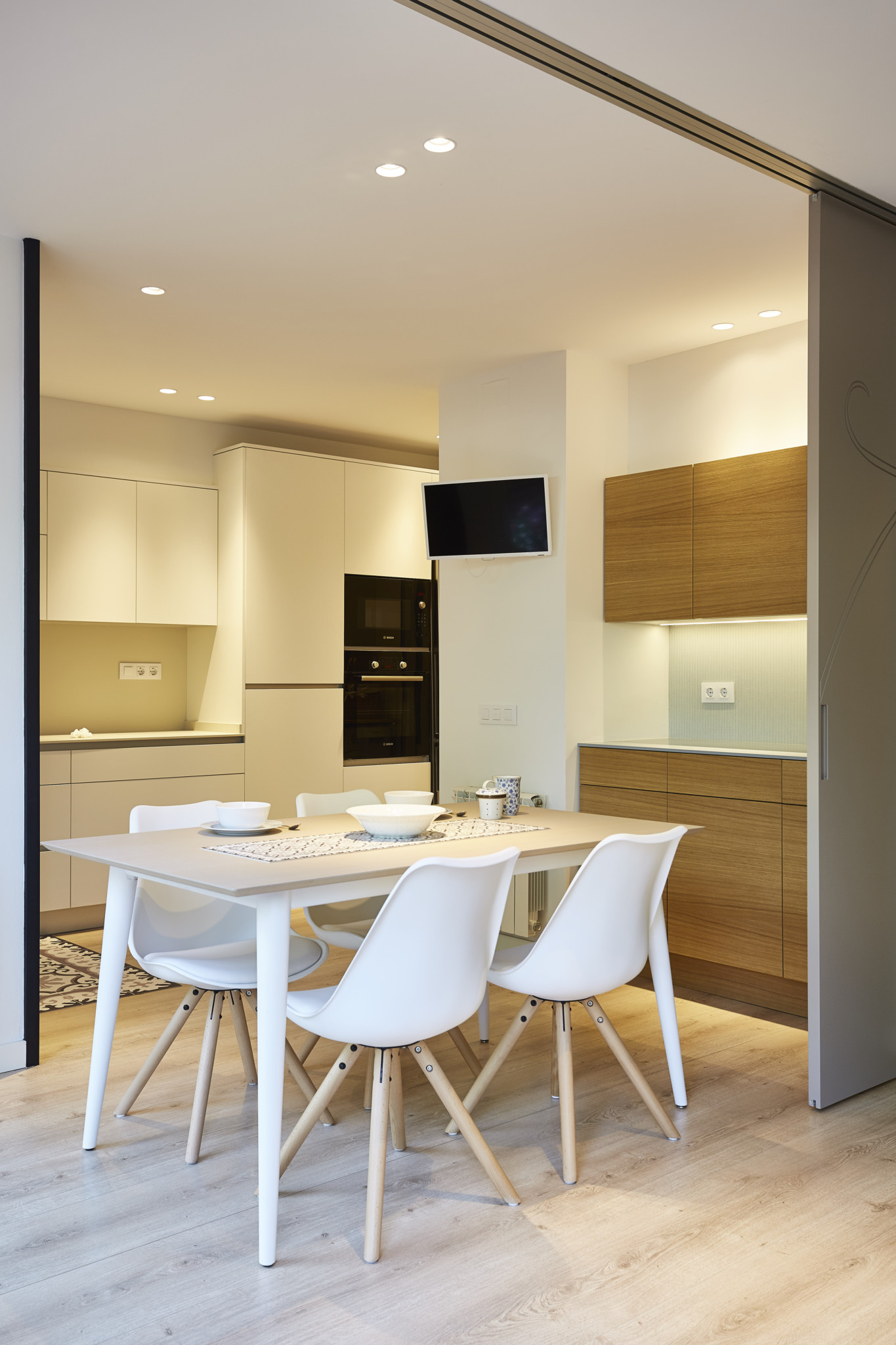Reforma integral d’un habitatge en planta baixa. La intervenció planteja uns espais més oberts que els que tenia l’habitatge original i millorar la relació visual entre les estances d’una i altra banda del pis. També s’ha volgut aconseguir la integració visual de les terrasses situades a un i altre extrem de la vivenda amb les zones interiors, per poder-ne gaudir de forma continuada i sense la necessitat d’estar físicament a l’exterior. Els canvis en la distribució i la utilització de materials completament diferents als que tenia el pis original permet tenir la sensació d’estar en un habitatge completament nou.