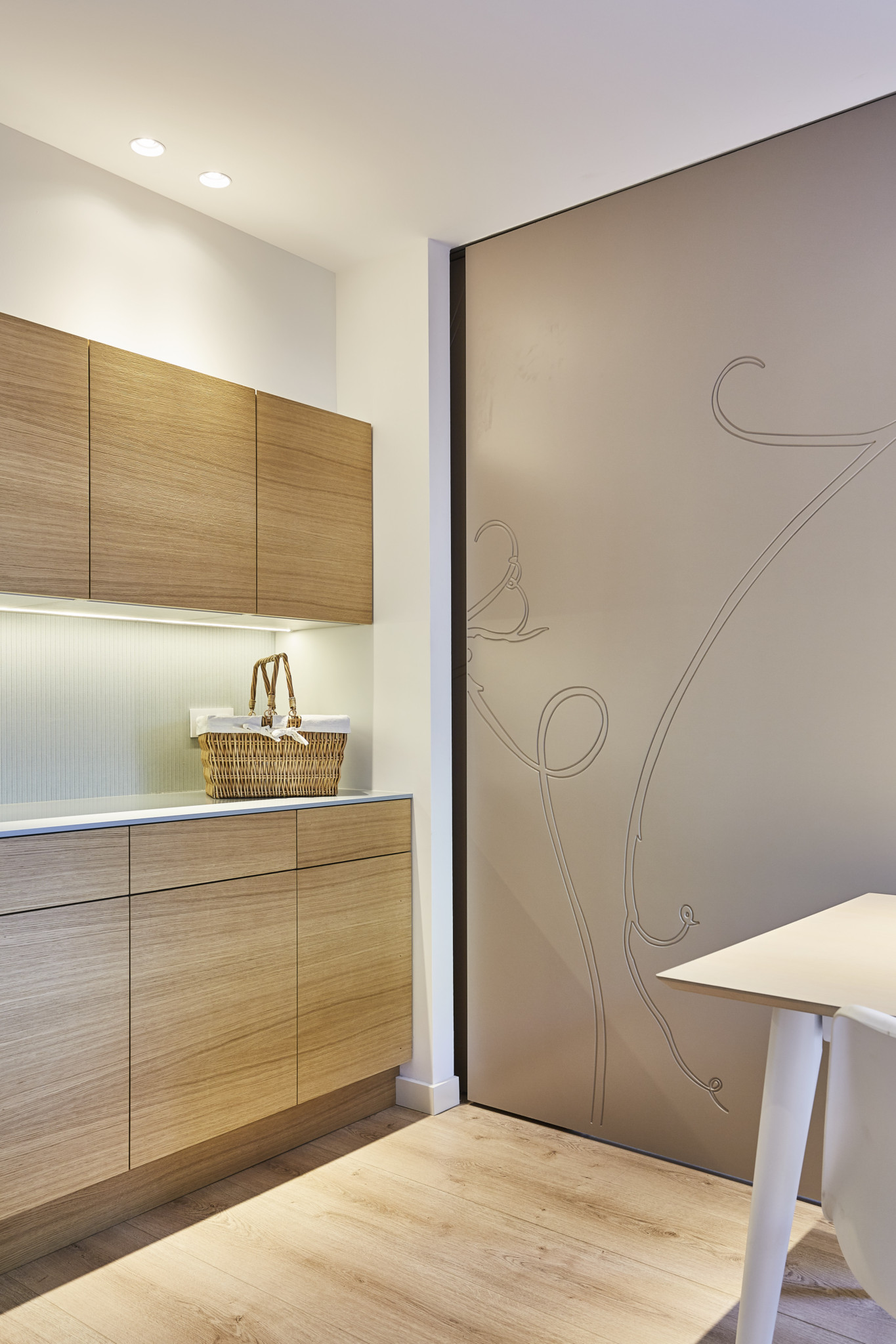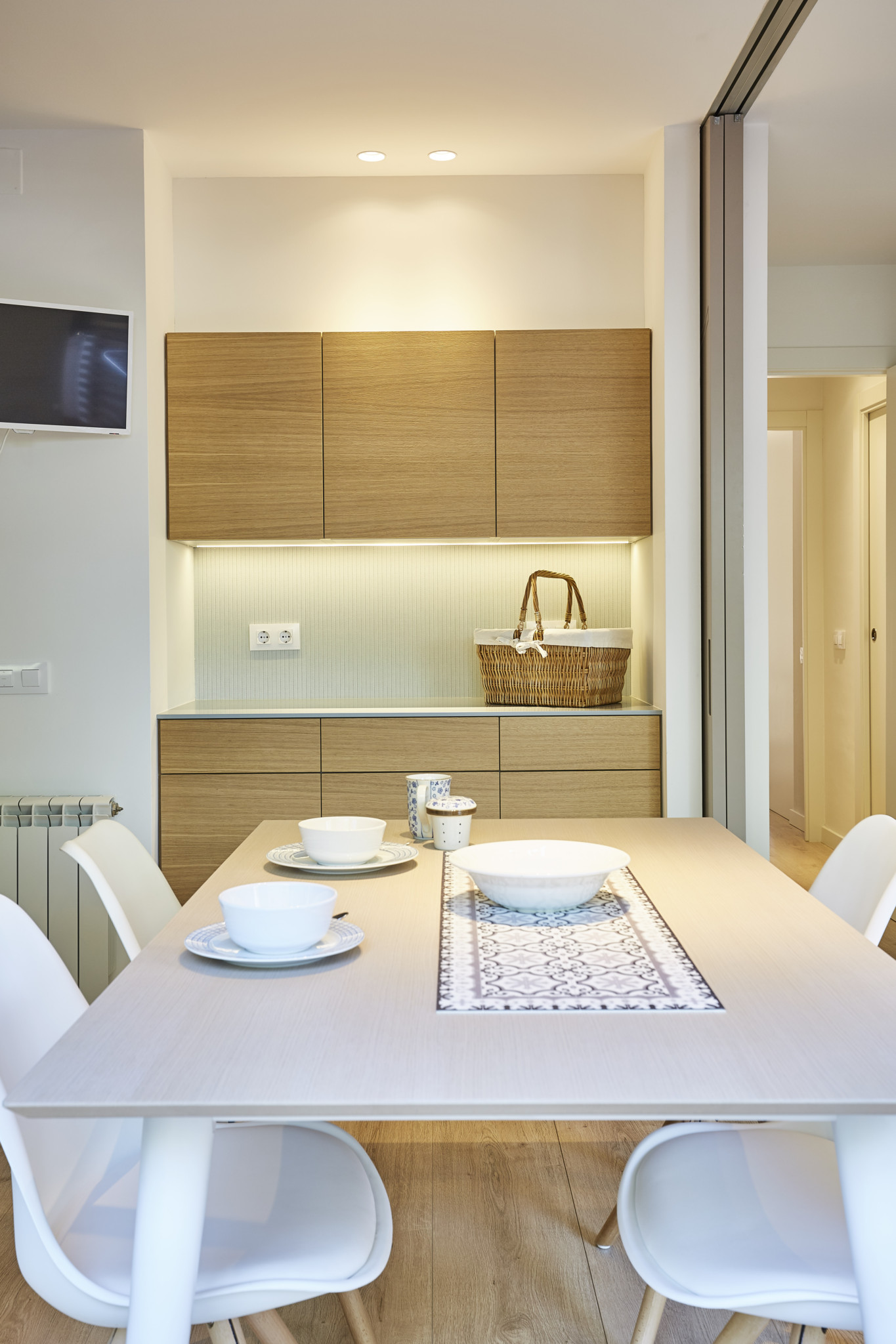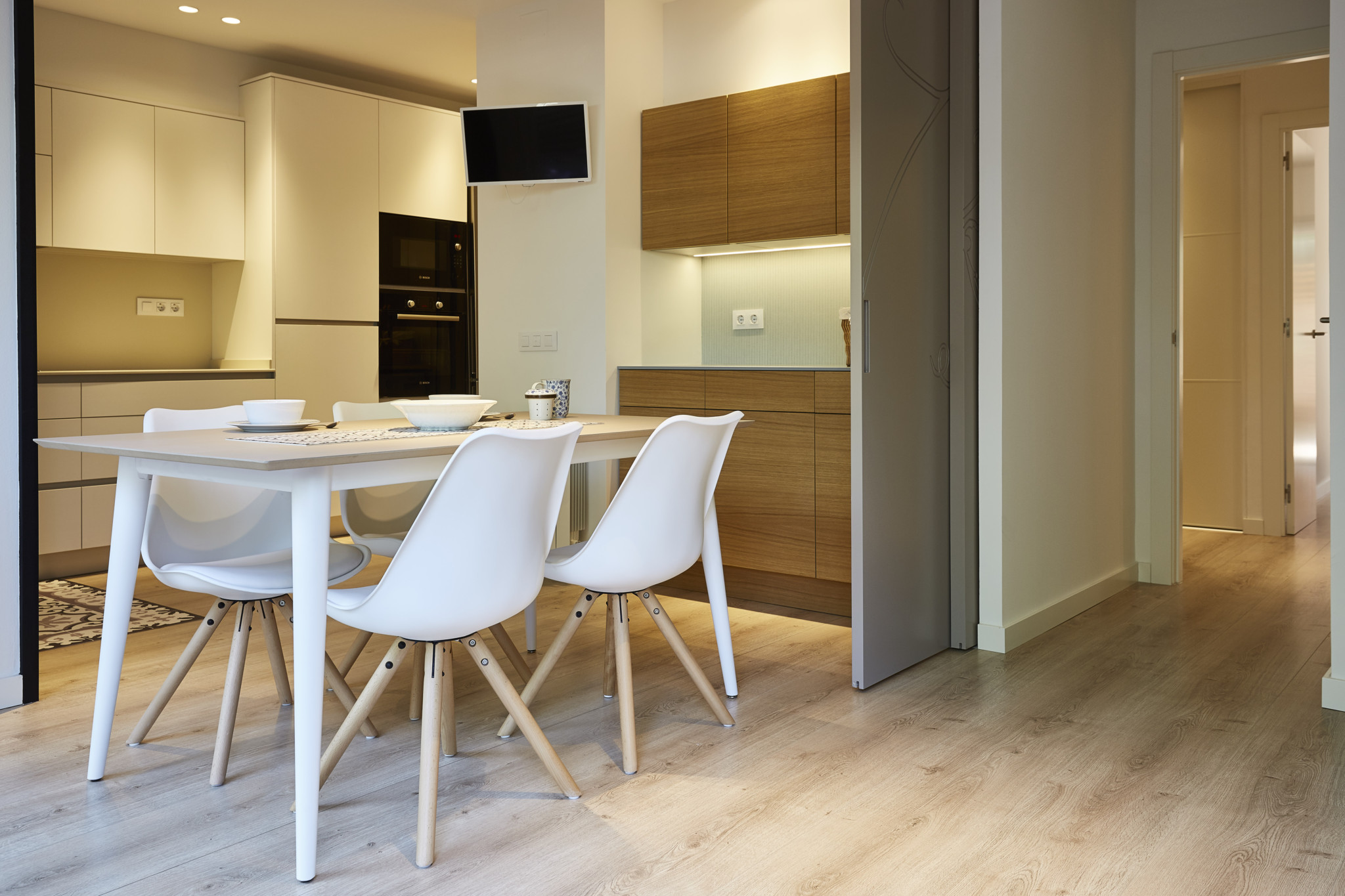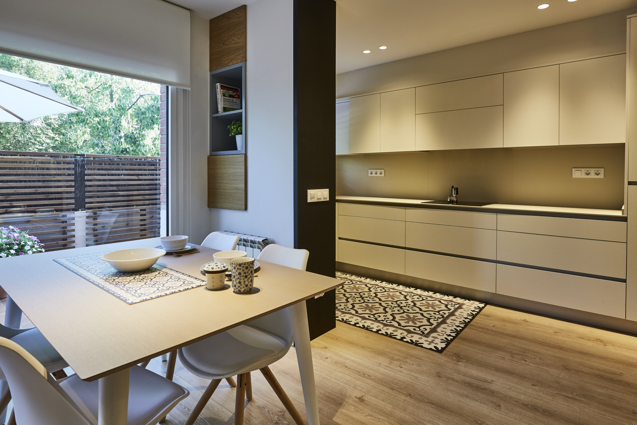 Reforma integral d’un habitatge en planta baixa. La intervenció planteja uns espais més oberts que els que tenia l’habitatge original i millorar la relació visual entre les estances d’una i altra banda del pis. També s’ha volgut aconseguir la integració visual de les terrasses situades a un i altre extrem de la vivenda amb les zones interiors, per poder-ne gaudir de forma continuada i sense la necessitat d’estar físicament a l’exterior. Els canvis en la distribució i la utilització de materials completament diferents als que tenia el pis original permet tenir la sensació d’estar en un habitatge completament nou.