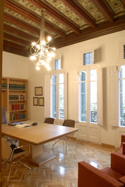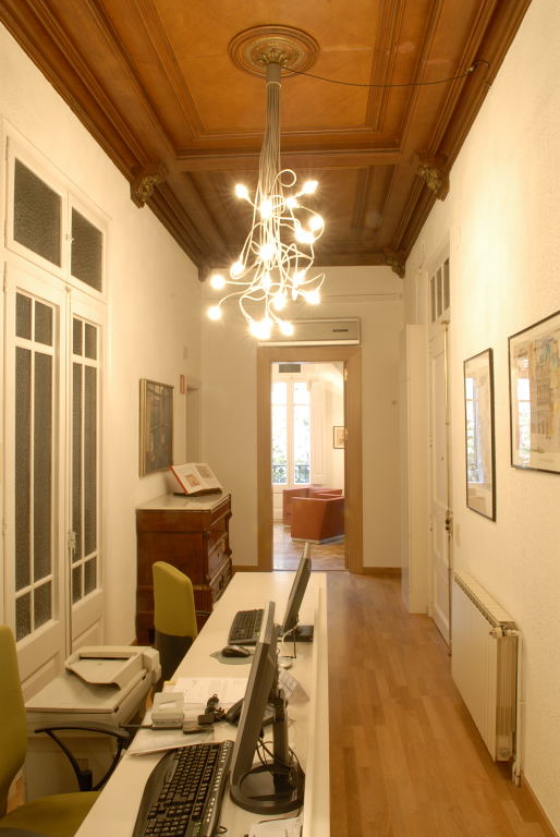 Les característiques pròpies de la finca on s’ubiquen aquests despatxos, de caire modernista i amb una forta personalitat, feia necessària una intervenció precisa que no entrés en conflicte amb el ja hi havia.