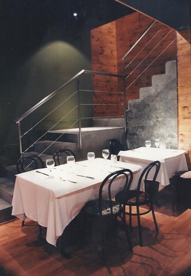Reforma i rehabilitació d’una casa de poble, a Vilanova i la Geltrú, per adequar-la a restaurant. La creació d’un ambient molt intimista va fer que s’utilitzessin materials i colors més aviat foscos amb aplicació de llum puntual pràcticament a tot el local excepte la cuina.